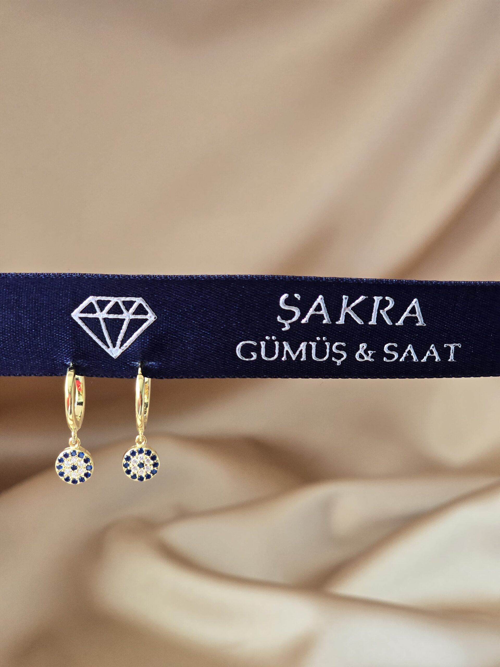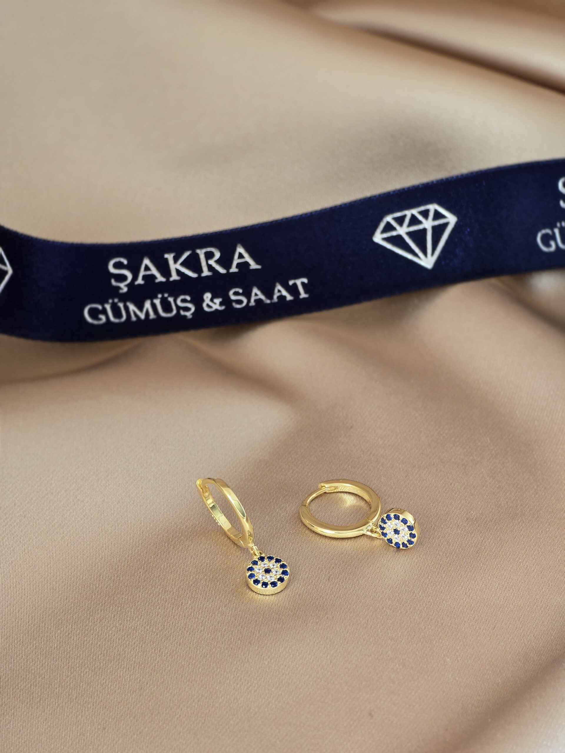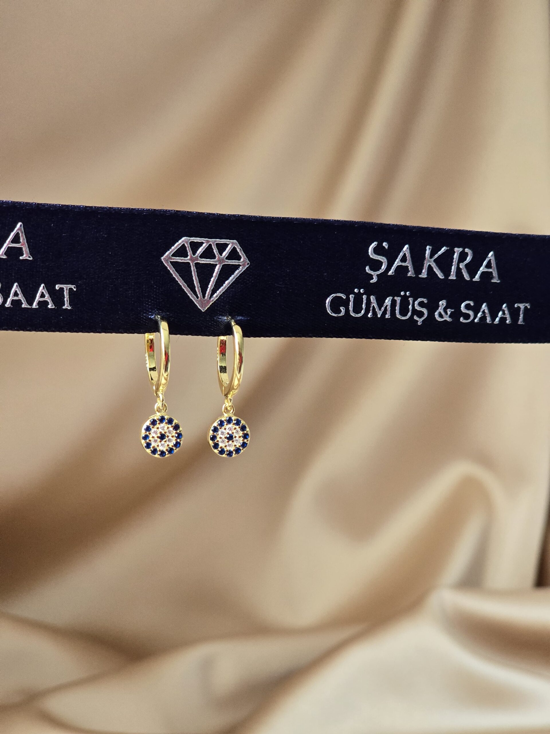 Renk: Altın kaplama – mavi nazar boncuğu detaylı