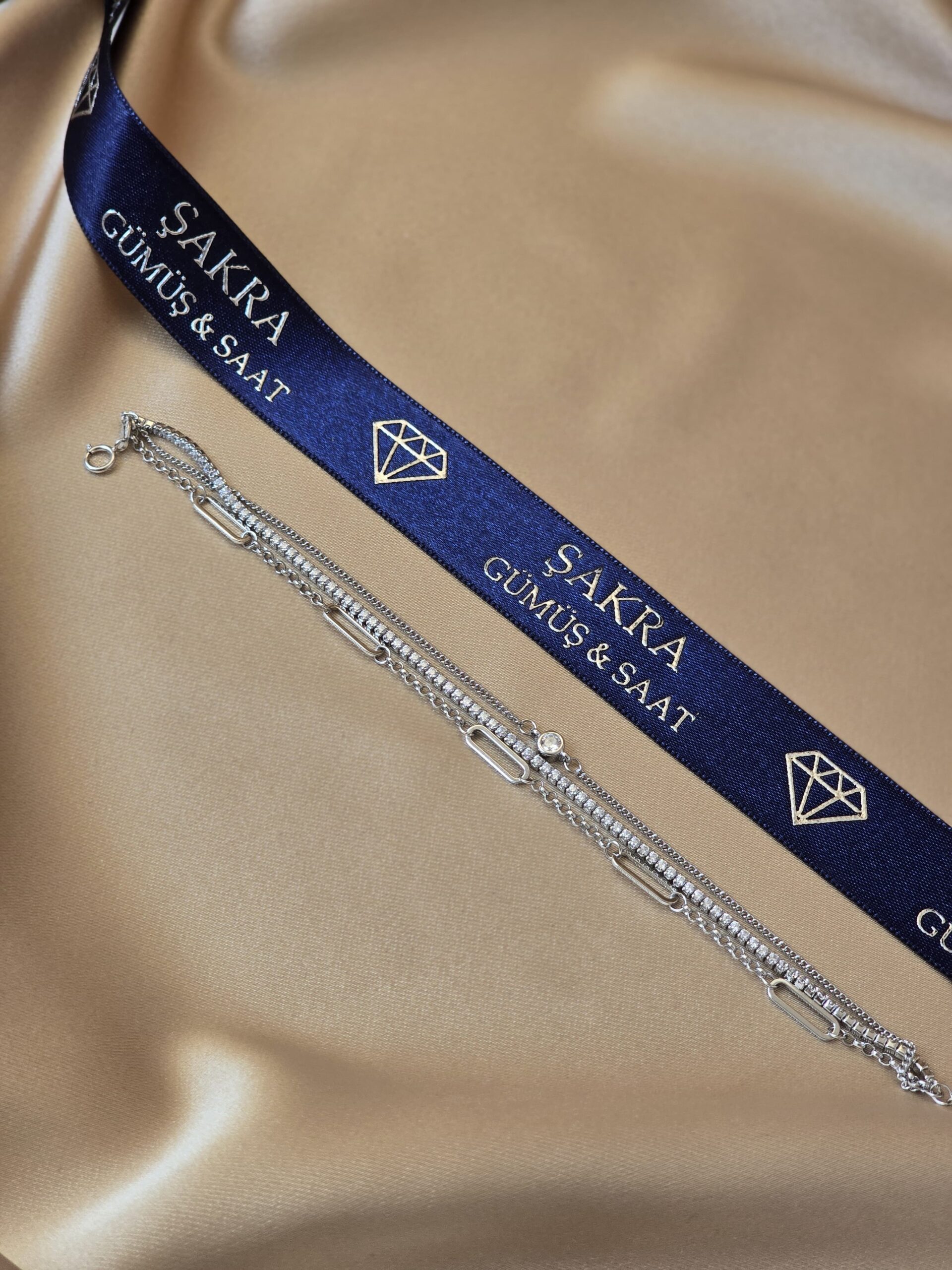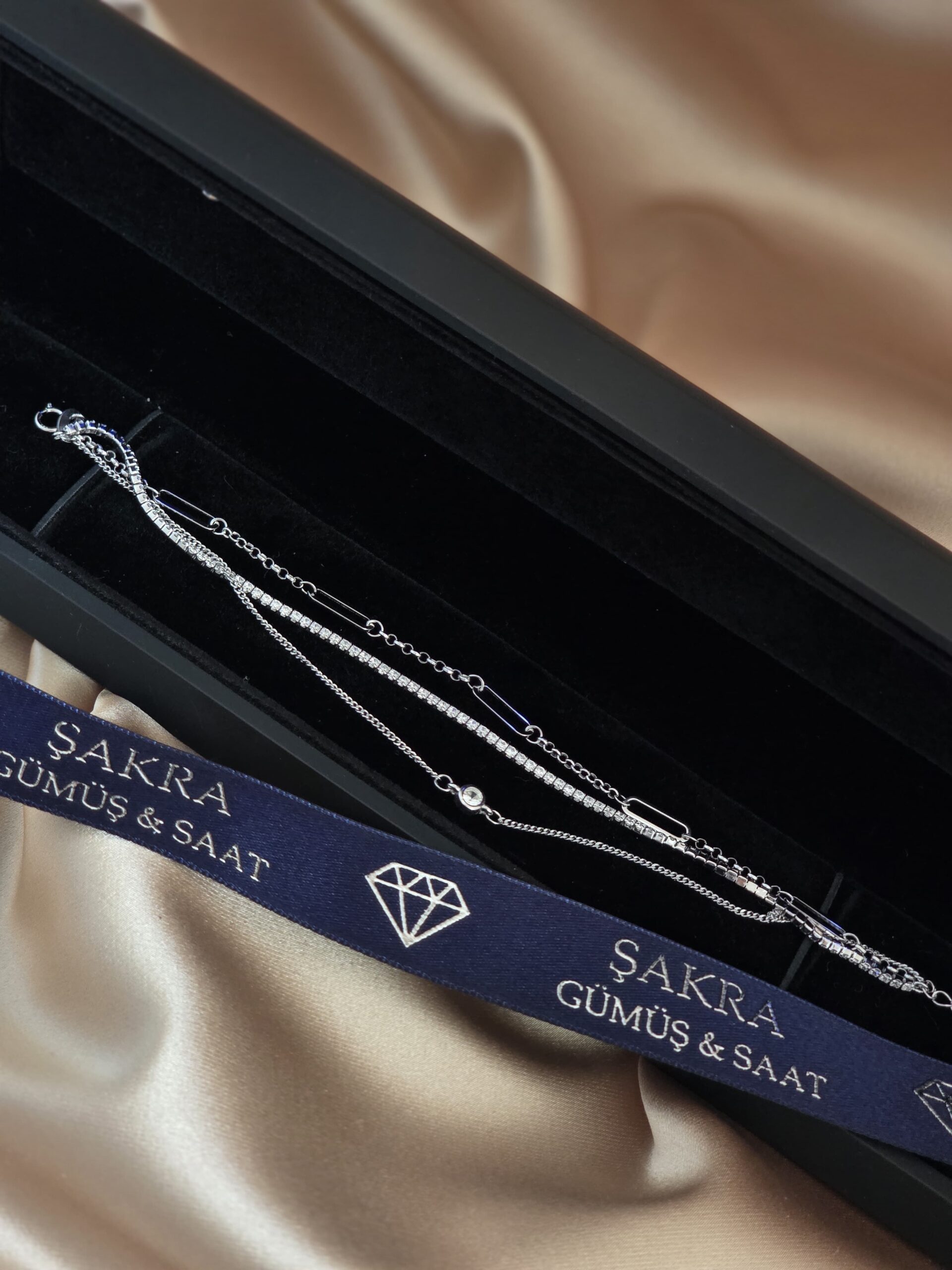 Şakra Gümüş & Saat’in modern çizgisini yansıtan çoklu zincir tasarımlı taşlı gümüş bileklik, hem zarif hem de güçlü bir stil isteyenler için özel olarak tasarlanmıştır.