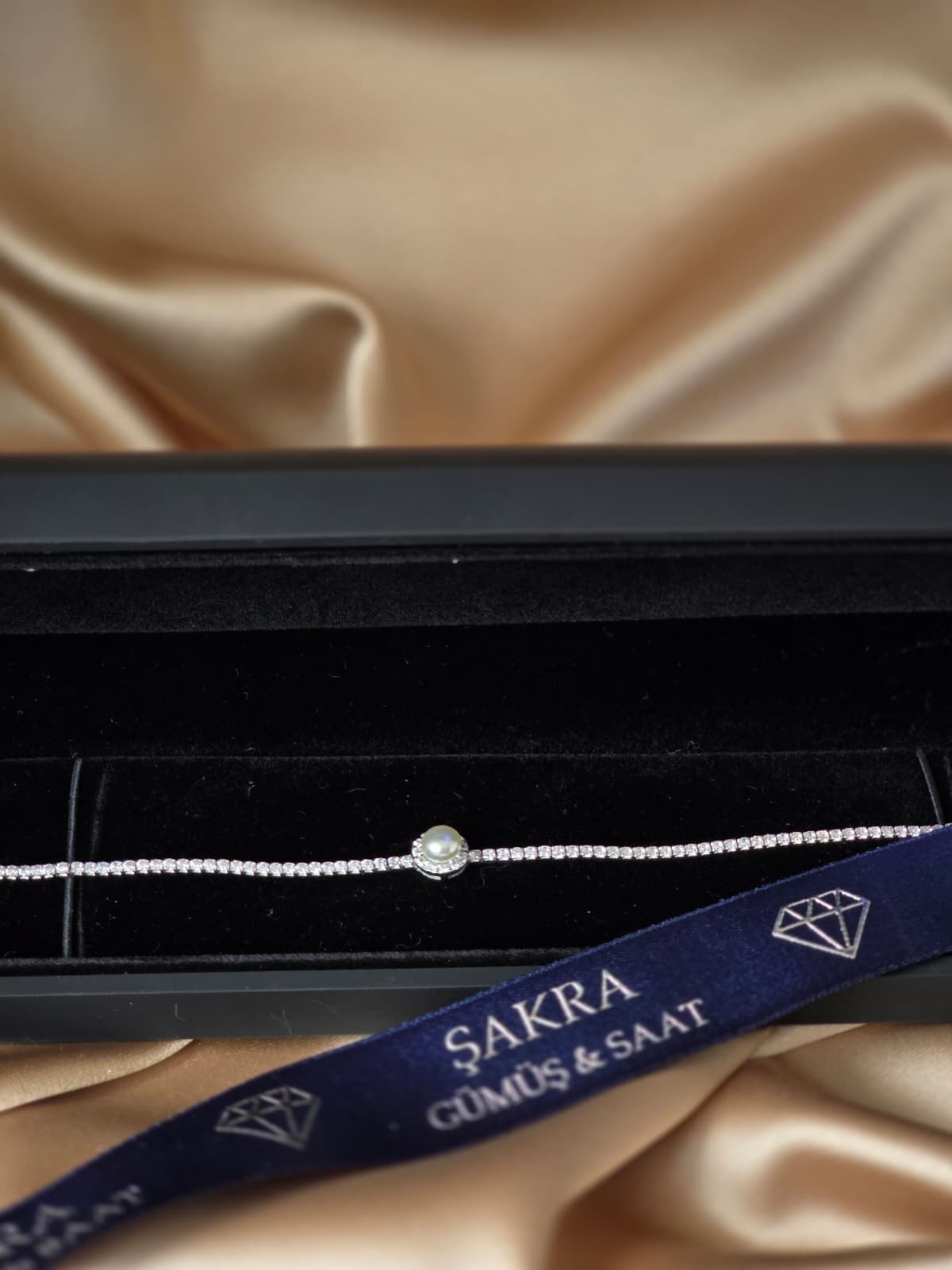 Şakra Gümüş & Saat’in özel tasarım koleksiyonundan inci detaylı zarif gümüş bileklik, şıklığı ve sadeliği bir arada sunan premium bir aksesuar modelidir.