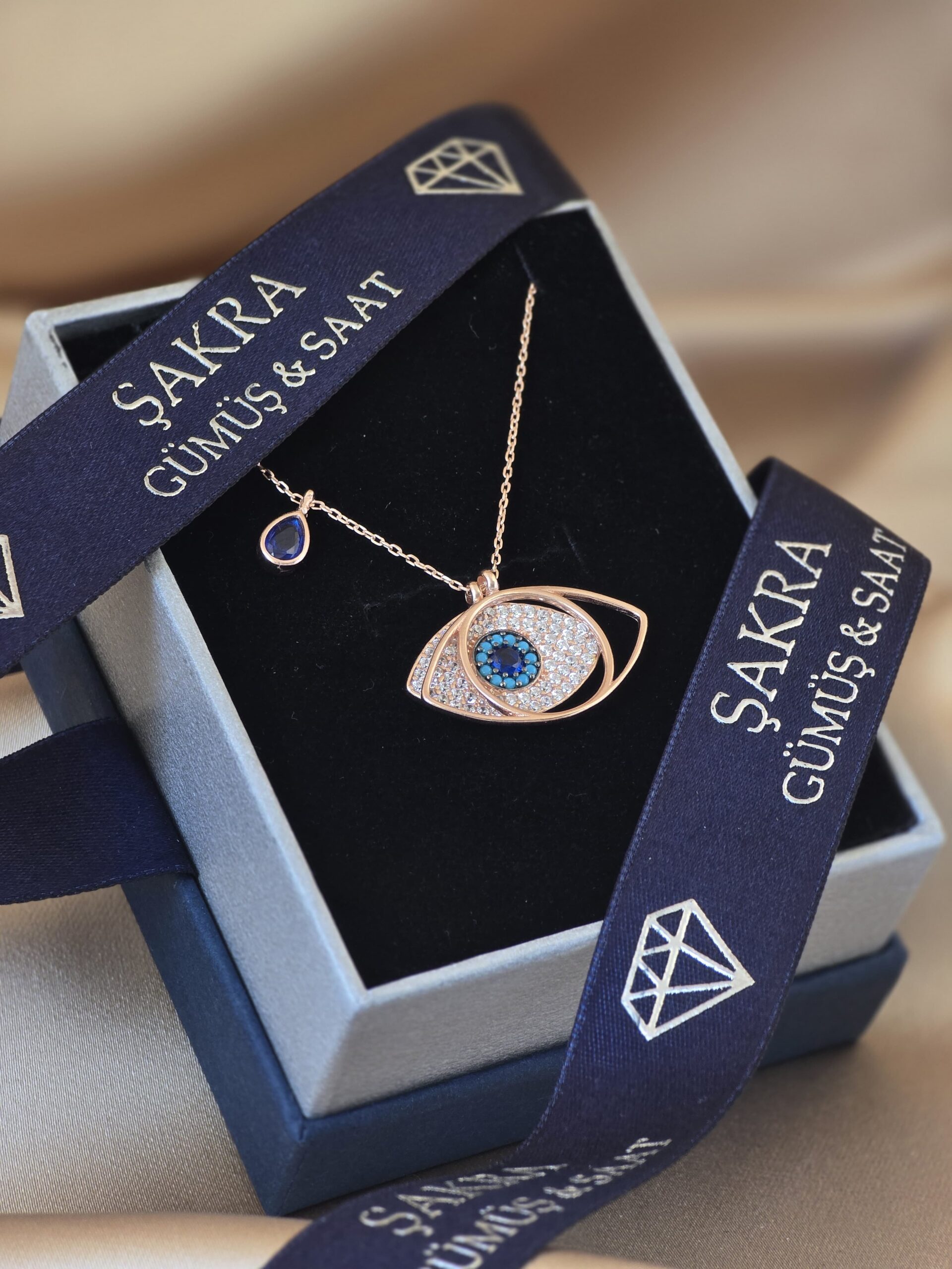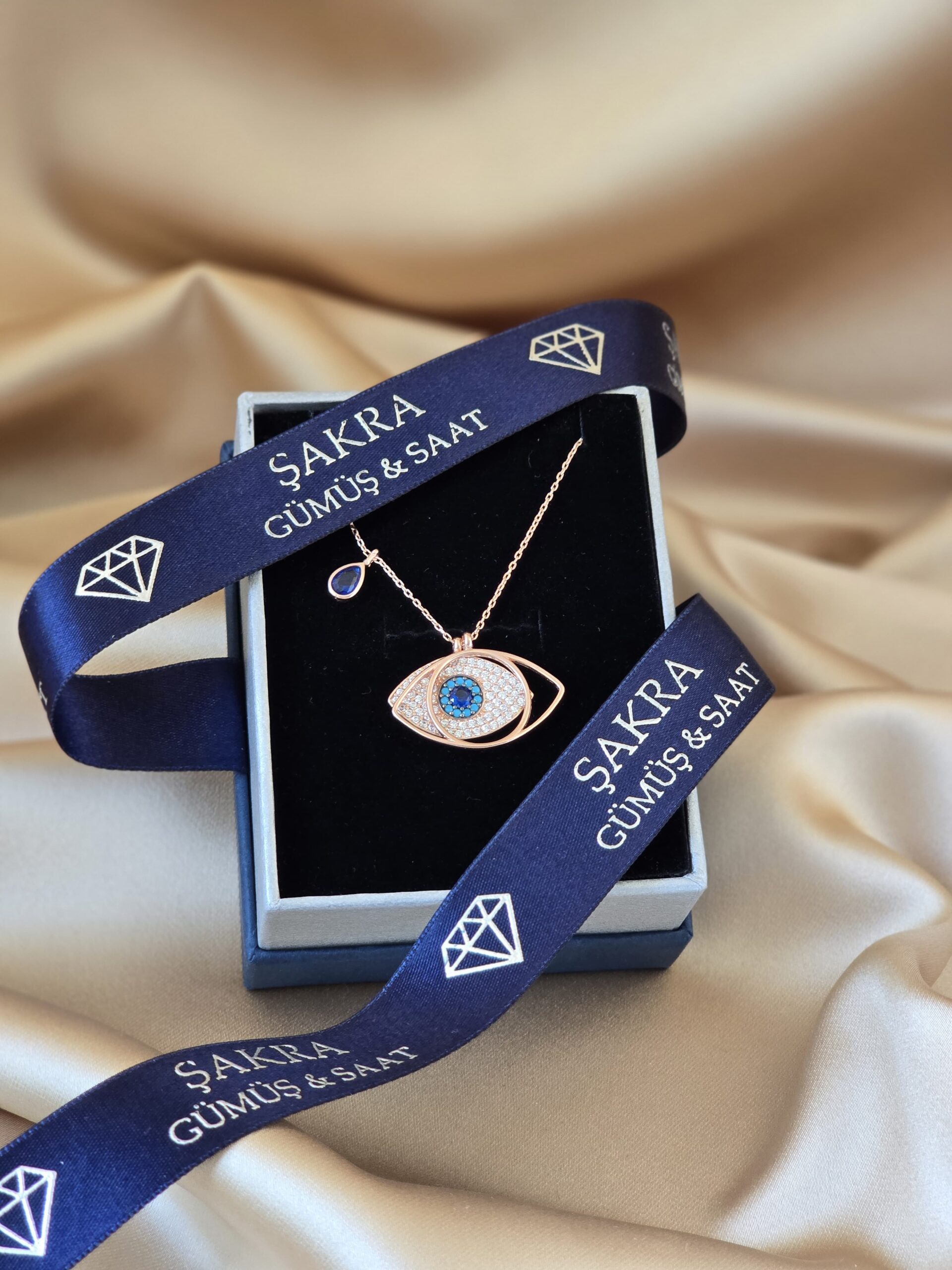 Kötü enerjilere karşı koruyucu bir sembol olan nazar göz figürü, modern ve gösterişli bir tasarımla buluşuyor.