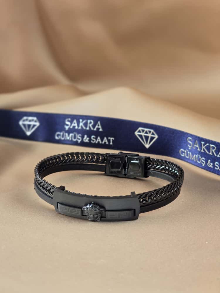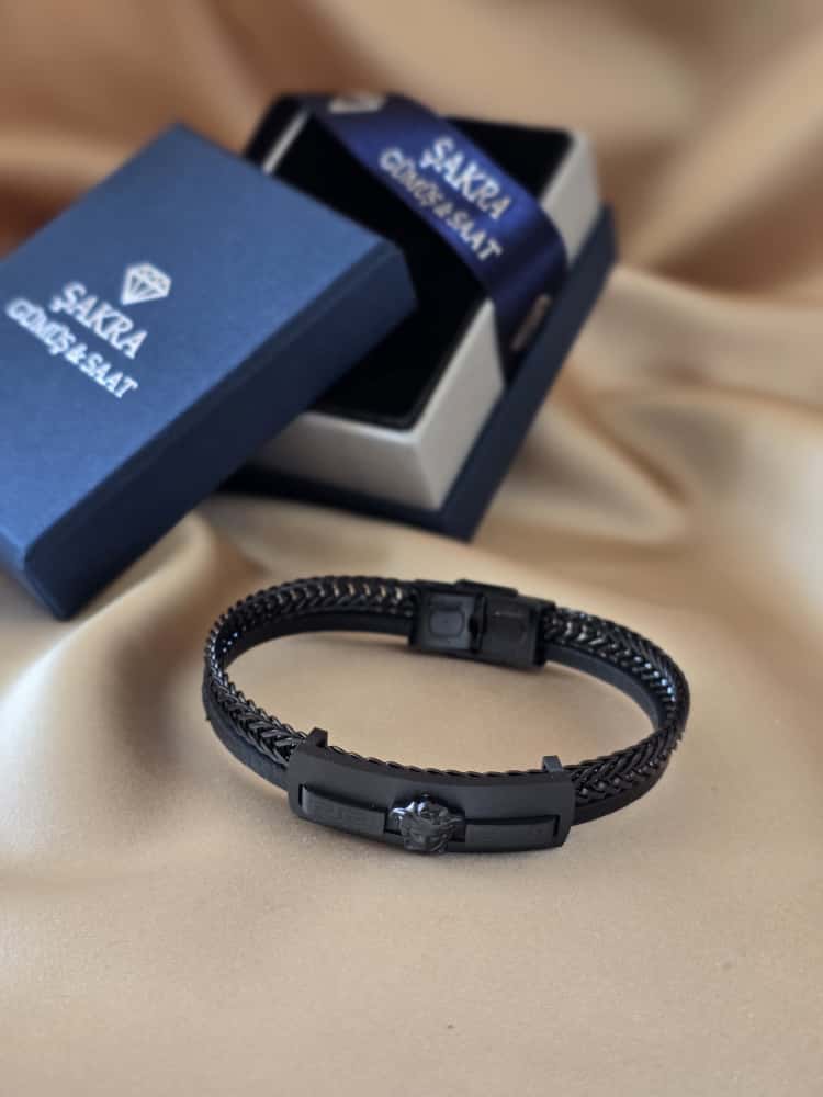 Gücü ve karizmayı simgeleyen aslan figürüyle öne çıkan bu bileklik, tamamen siyah tasarımıyla maskülen bir duruş sergiler. Örgü çelik formu bilek üzerinde güçlü bir görünüm sunarken, orta bölümde yer alan mat siyah plaka ve aslan detayı tasarıma karakter katar. Modern çizgilerle hazırlanmış bu model, net ve iddialı bir stil arayanlar için özel olarak tasarlanmıştır. Günlük kullanımda rahatlık sağlarken, tarzına sert ve kararlı bir dokunuş ekler.