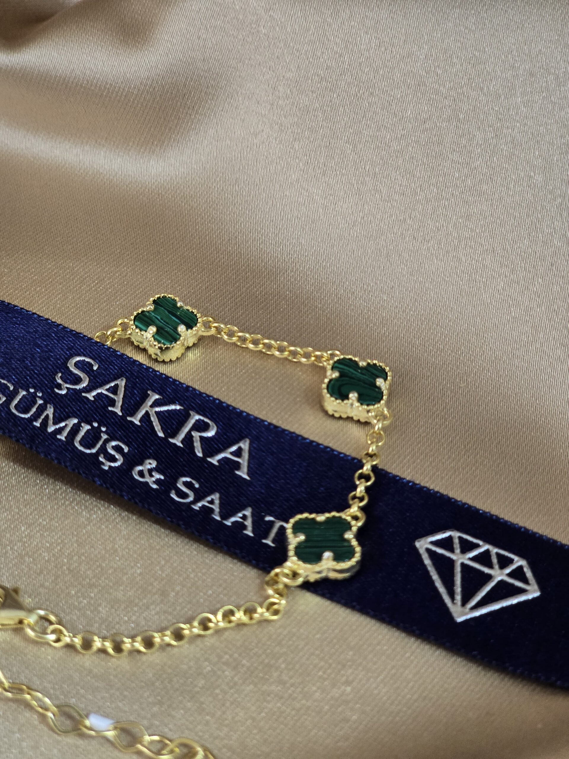 Şakra Gümüş & Saat’in özel koleksiyonundan Yeşil Yonca Model Altın Kaplama Bileklik, zarif tasarımı ve göz alıcı detaylarıyla stilinizi tamamlayan şık bir aksesuardır.